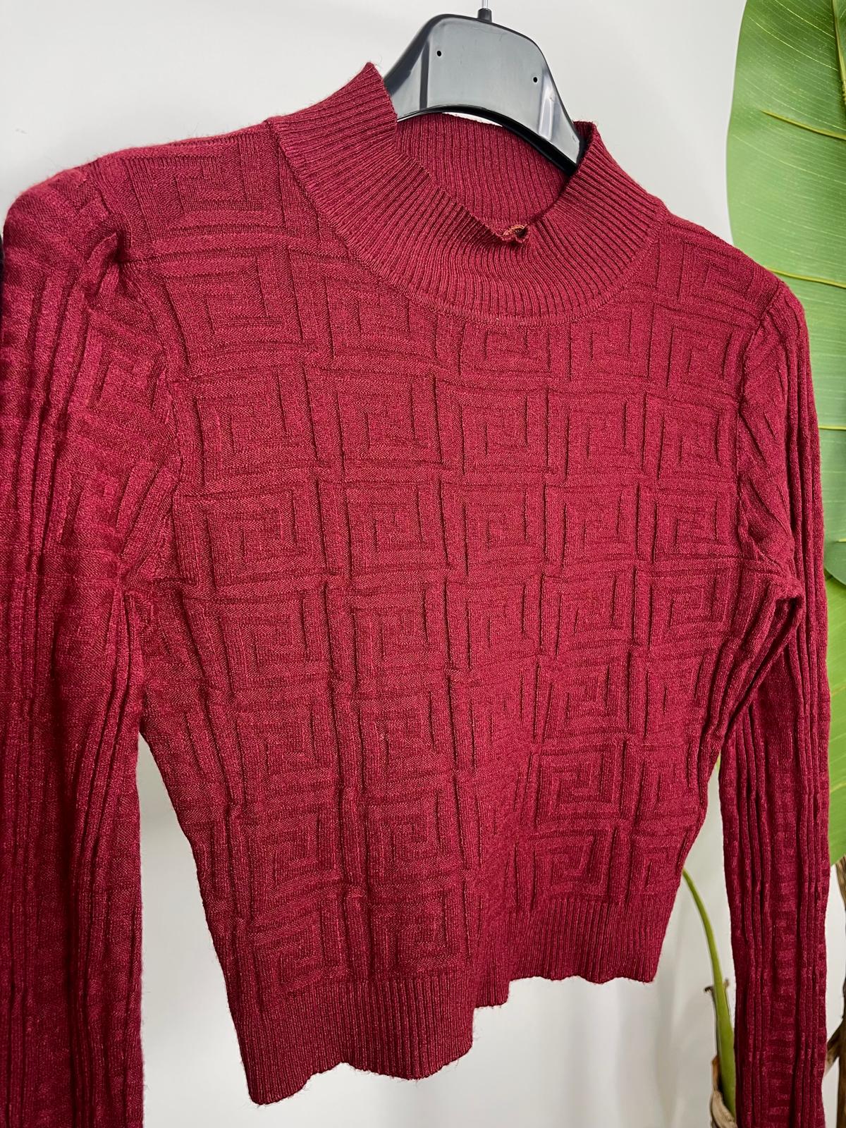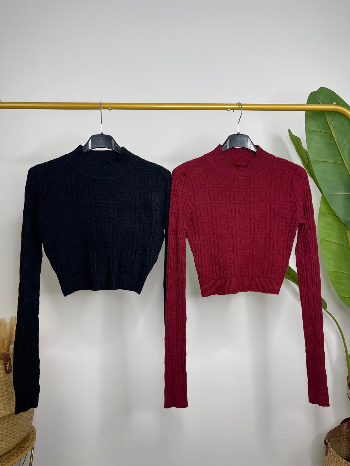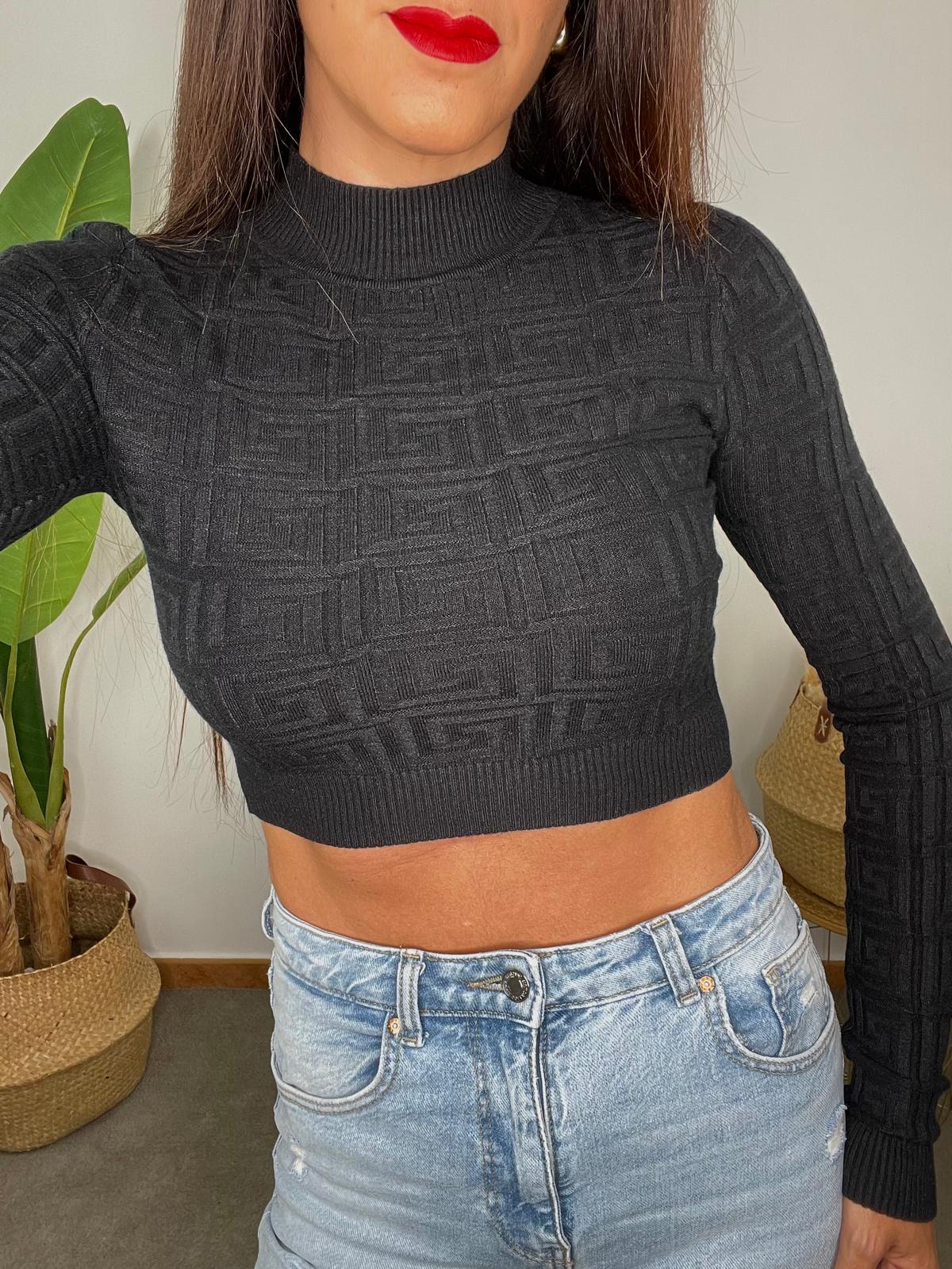 Jersey crop de punto y manga larga. Detalle de relieve en el tejido.